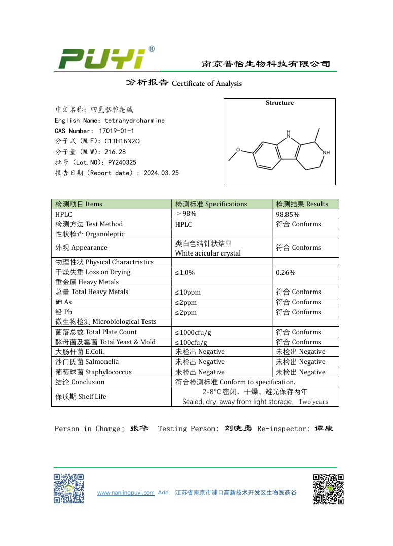 中文別名:四氫駱駝蓬堿